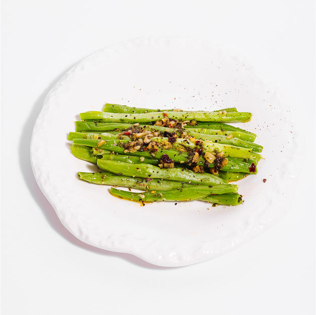 Tender long beans are lightly coated with olive oil and seasoned with a touch of salt, then finished with golden fried garlic for a burst of rich, savoury flavour. Perfect as a side to grilled meats, stir-fries, or enjoyed on their own, these beans add freshness to your plate.